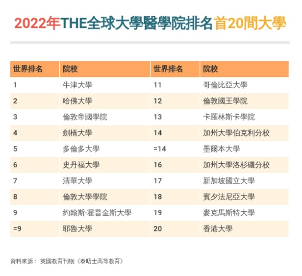 THE大學(xué)排名出爐 港首次4大學(xué)齊躋全球百大 港大排30最高